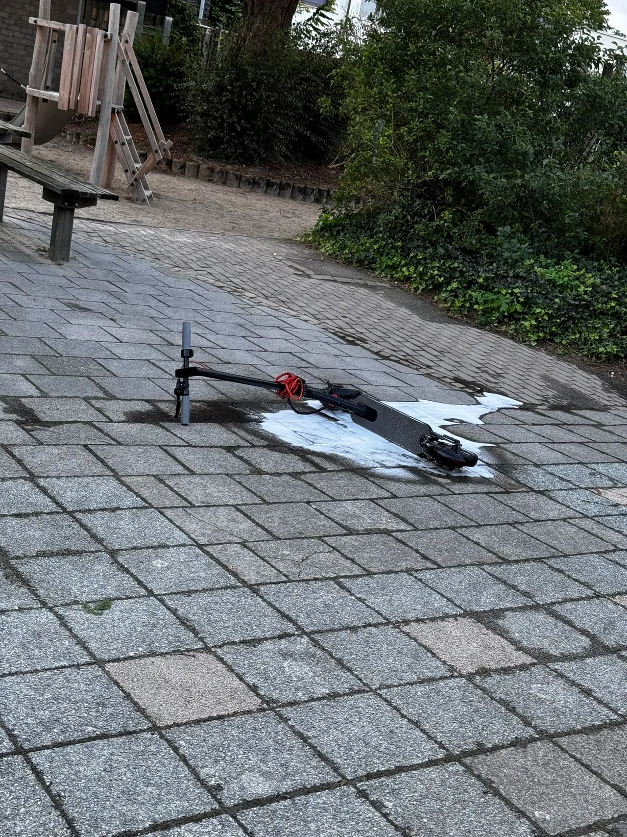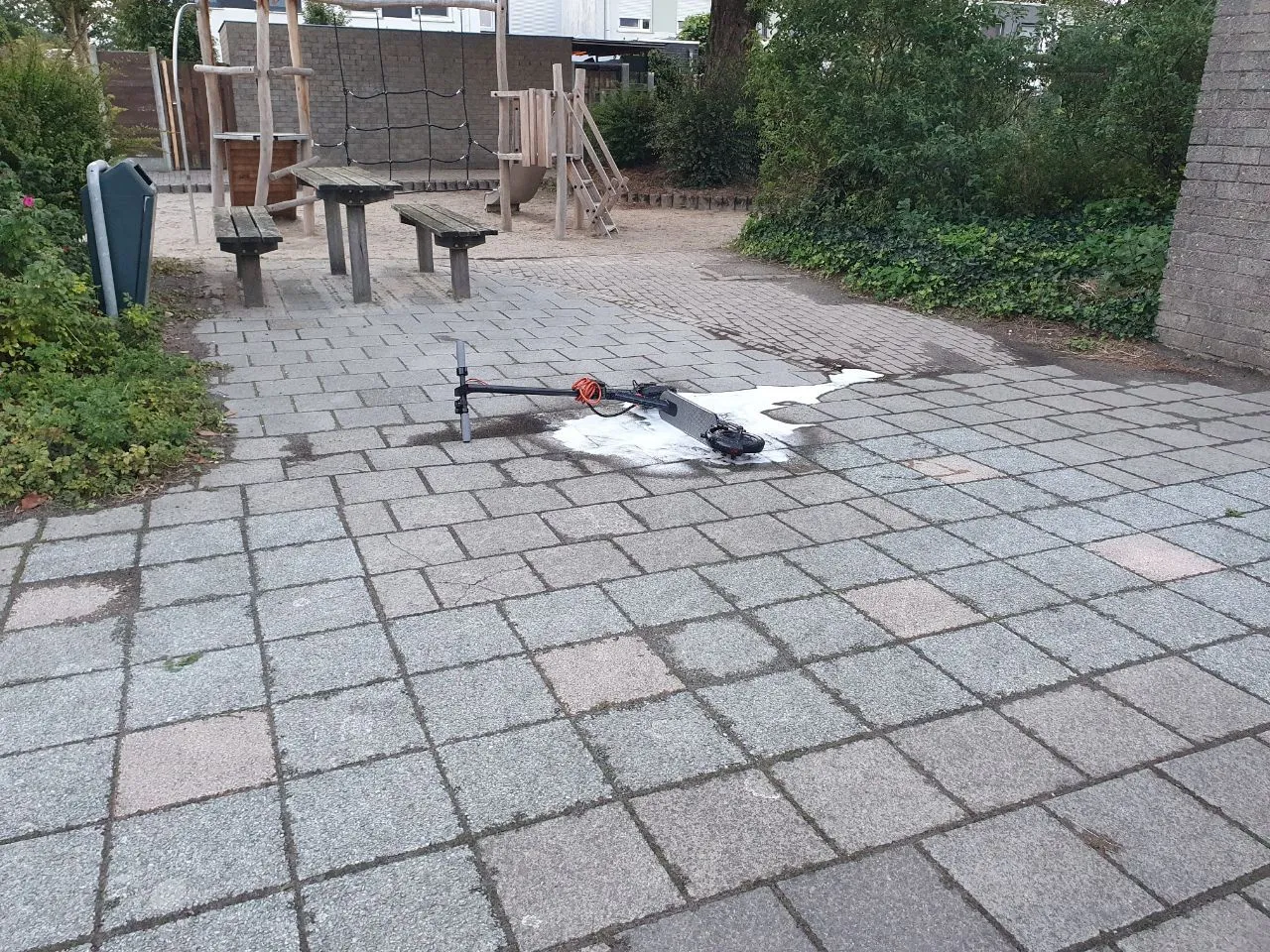 Het is niet duidelijk of het electrische apparaat aan de stroom stond om opgeladen te worden. De moeder rook een brand/schroeilucht en ging op onderzoek uit. Ze trof er een electrische step aan die inmiddels vlam had gevat. Ze riep de hulp in van de buurman die onmiddellijk de step naar buiten bracht. Met een brandblusser heeft de buurman de vlammen eraf gekregen. De brandweer heeft nog een nacontrole gedaan en de woning geventileerd.