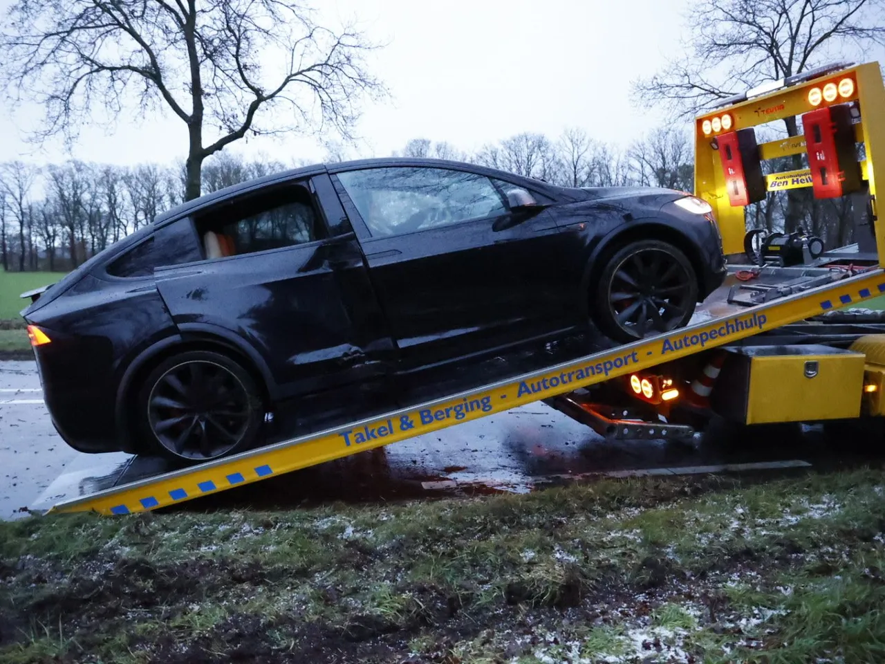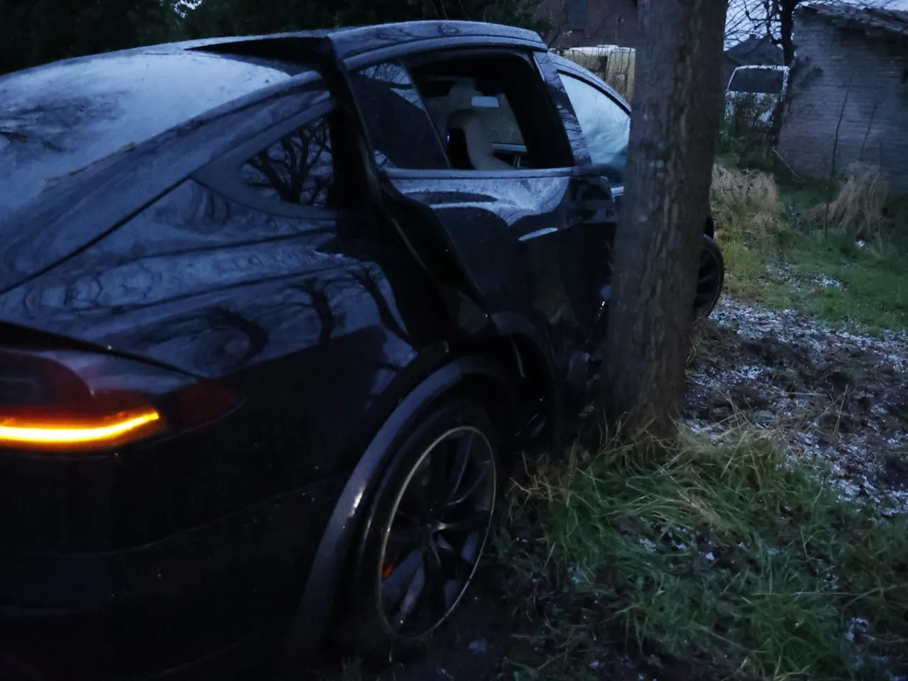 Een personenauto is zondagmorgen door een plotselinge hagelbui tegen een boom gebotst aan de N277 in Zeeland.