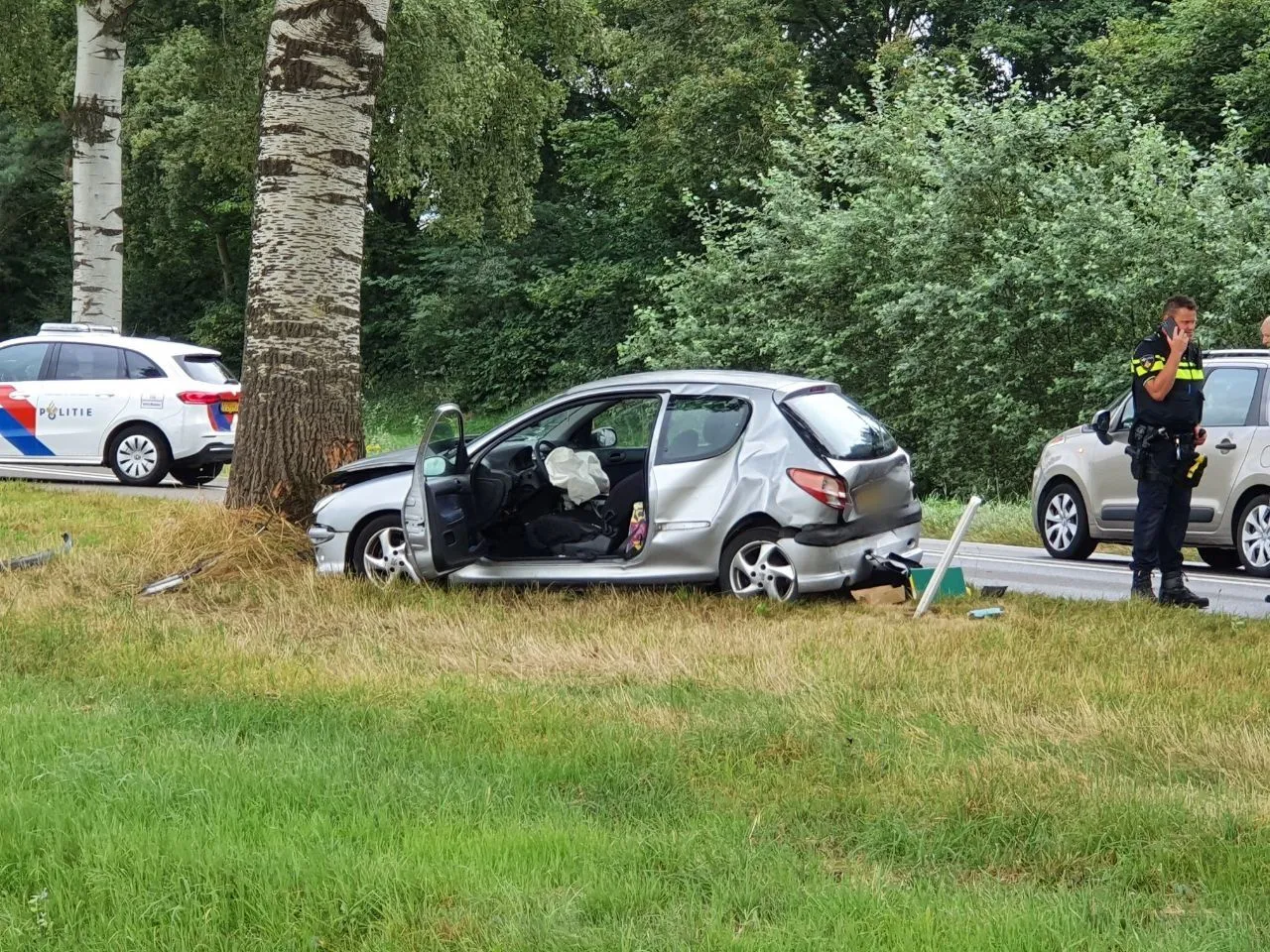 Bij een kop-staart aanrijding op de Rondweg in Uden is vrijdagmiddag een auto tegen een boom tot stilstand gekomen.