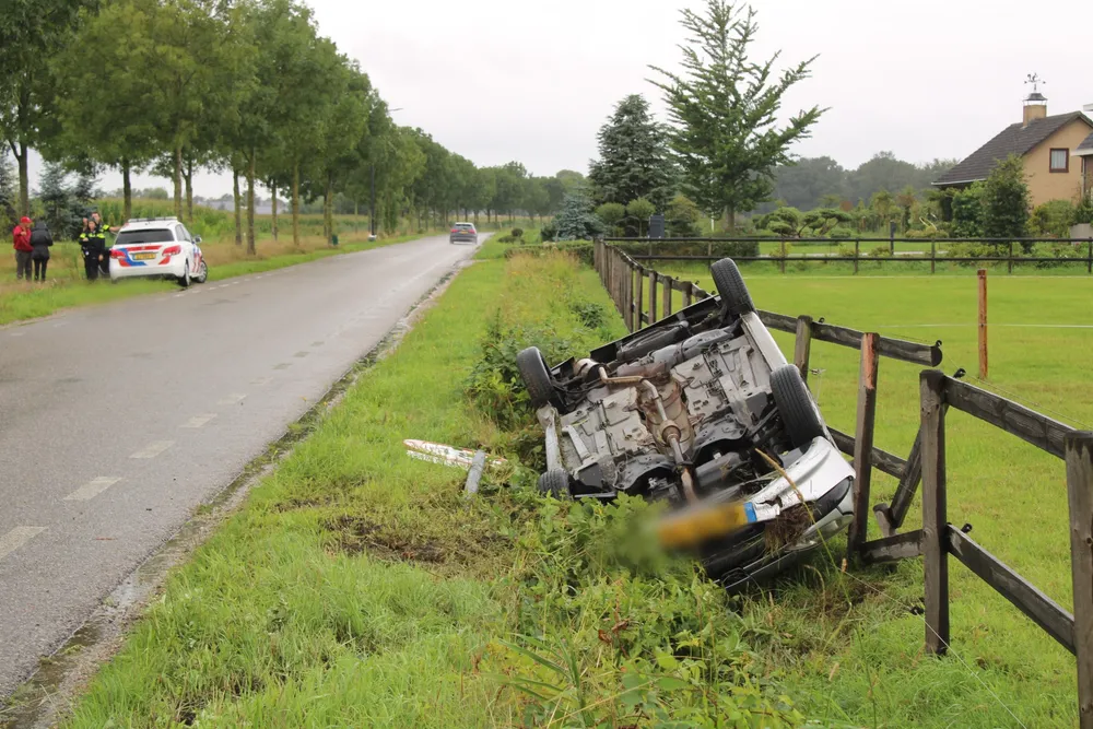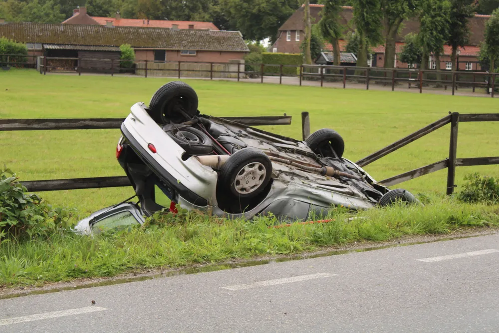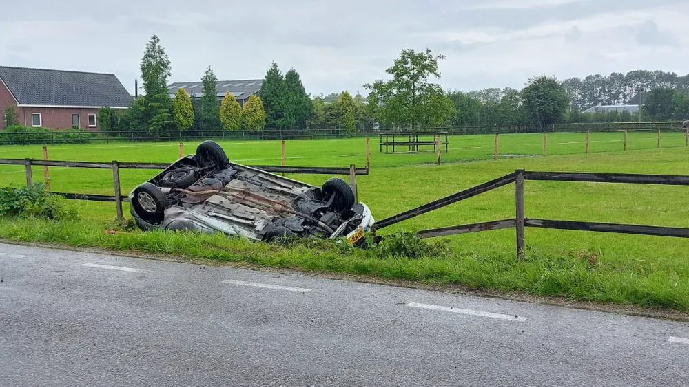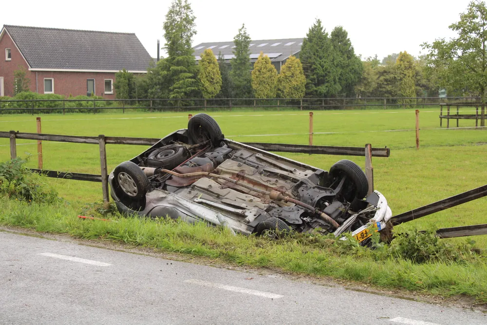Door de klap is het hekwerk van een weiland gebroken. Ook heeft de bestuurder een bord omver gereden. Een opgeroepen ambulance heeft de bestuurder nagekeken, maar vervoer bleek niet nodig. Bestuurder zou in de bocht de macht over het stuur zijn verloren. De auto wordt door een bergingsbedrijf getakeld. Politie is ook ter plaatse geweest. Betreft een éénzijdig ongeval.