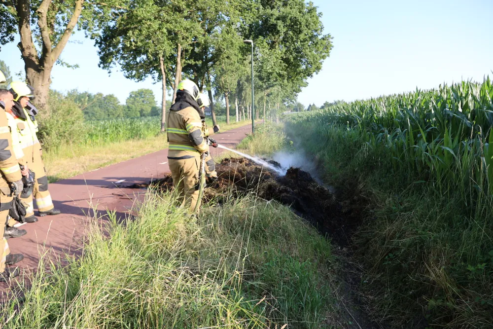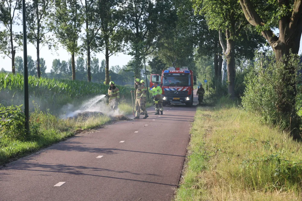 De gealarmeerde brandweer van Veghel is ter plaatse geweest om de brand te blussen. Met een vork hebben de manschappen de berg hooi uit elkaar getrokken en afgeblust. Vermoedelijk is broei de oorzaak van deze brand. Wandelaars ontdekte de brand hebben de hulpdiensten gebeld.