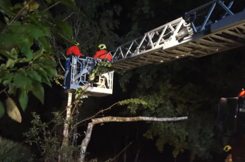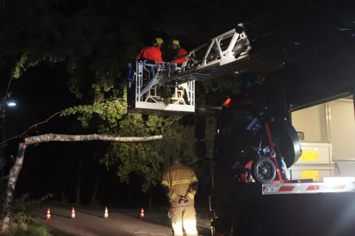 Er hing een stuk tak gevaarlijk over de weg. Met de ladderwagen deden de manschappen een poging om de boom om tezagen maar helaas kwamen ze er niet bij en moest het vanaf de grond gebeuren. Uiteindelijk was het ze gelukt de boom kort te zagen. De brandweer was met een tankautospuit en een ladderwagen ter plaatse geweest. De Erikaweg was tijdelijk gestremd voor verkeer.