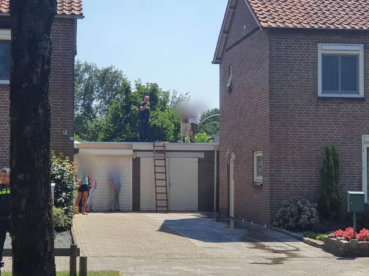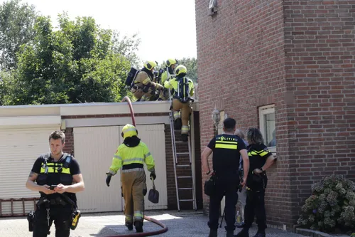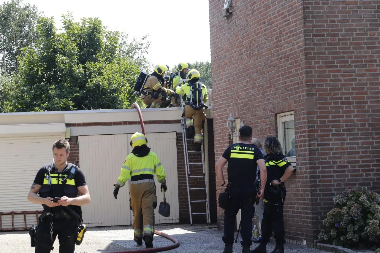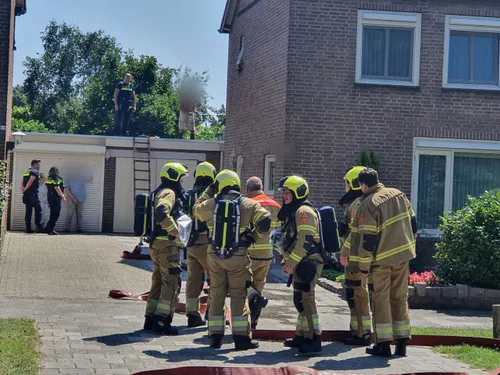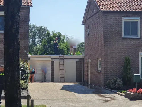 De zijkant van het dakconstructie van de garage, welke aan de woning vast zit, vatte door werkzaamheden aan het dak vlam. De brandweer rukte met groot materieel uit en had de brand snel onder controle. De constructie werd met wat gereedschap open gemaakt om goed bij de vuurhaard te kunnen en af te kunnen blussen.
