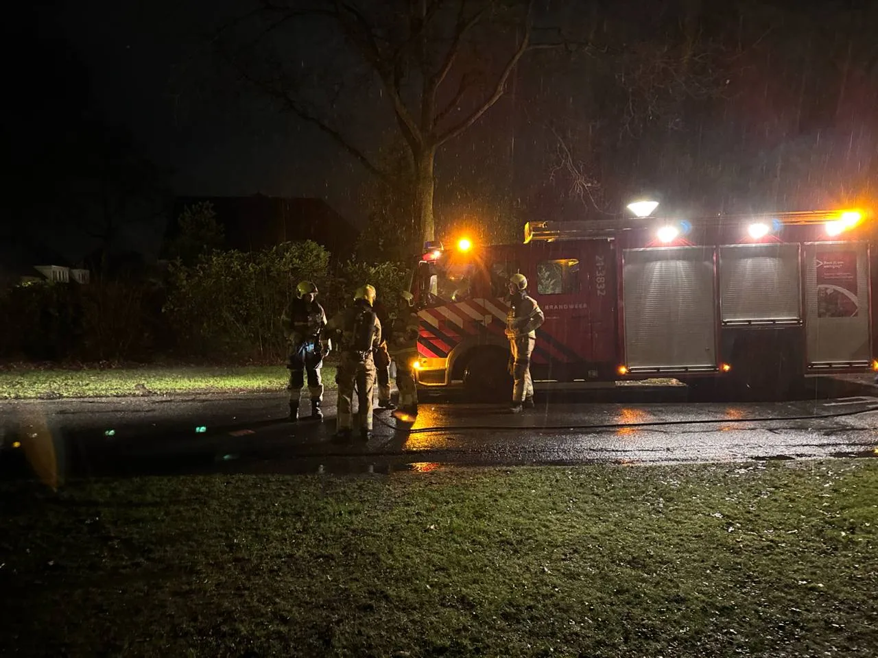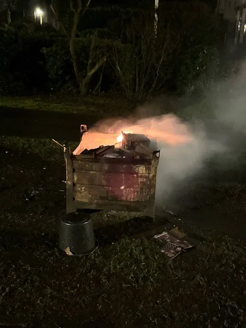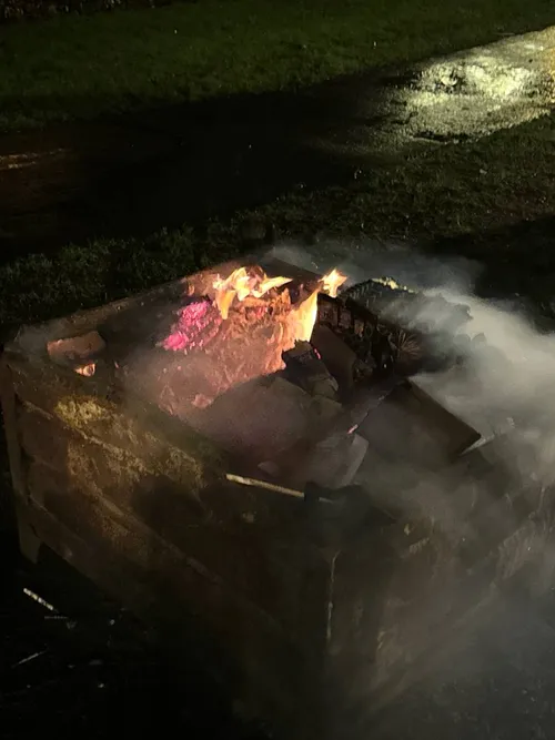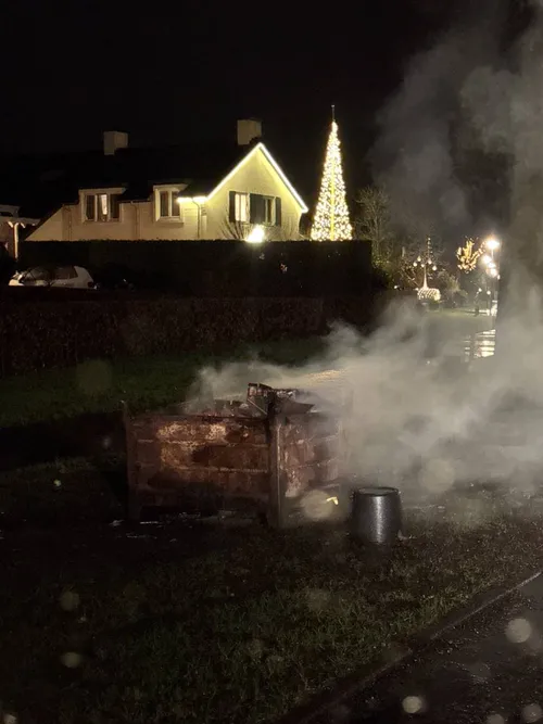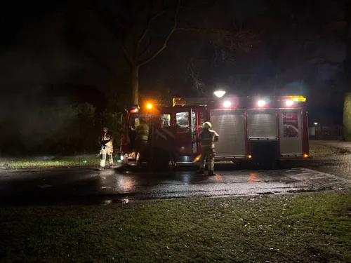 Bij aankomst stond er een ijzeren krat met dozen afval vuurwerk in brand wat voor hevige rookontwikkeling in de buurt zorgde. Deze was vermoedelijk aangestoken door jongeren. Buurtbewoners hebben de brandweer gebeld. De manschappen hebben het afval afgeblust.