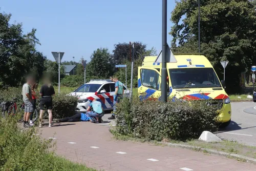 De fietser op leeftijd was alleen en ging op de rotonde met de Hoge Randweg door nog onbekende oorzaak onderuit en raakte gewond. Mogelijk dat de warmte parten heeft gespeeld. Het slachtoffer is ter controle overgebracht naar het ziekenhuis