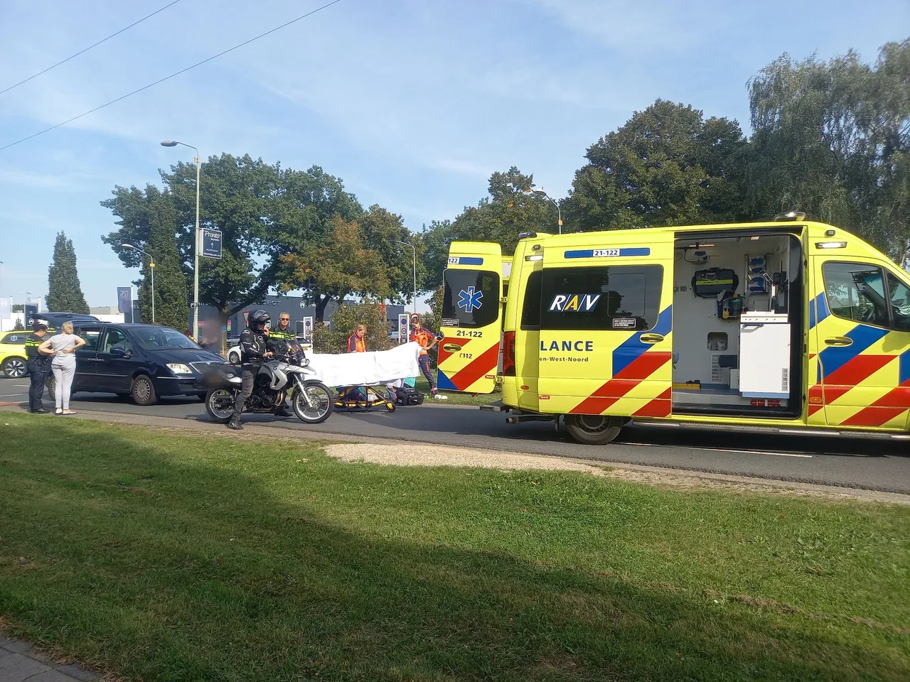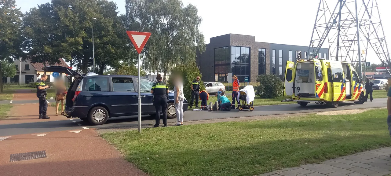 Bij het oversteken is de fietser geschept door een personenauto. Een opgeroepen traumateam per auto heeft de ambulancebroeders geassisteert. Fietser is met een forse hoofdwond afgevoerd met spoed met ambulance naar ziekenhuis. Hoe het ongeval kon gebeuren wordt onderzoek naar gedaan. De Industrielaan was geheel afgesloten voor verkeer om de hulpdiensten de ruimte te geven.