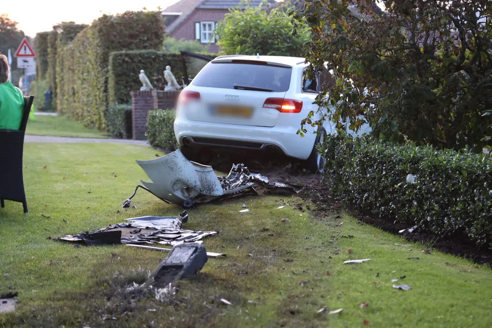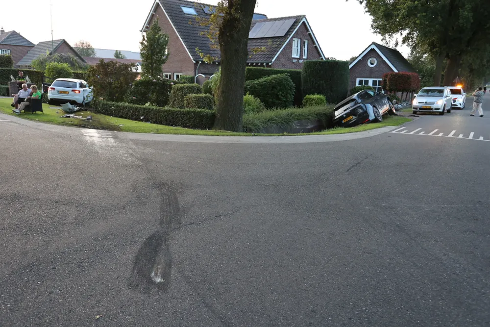 Vermoedelijk hebben ze elkaar over het hoofd gezien. Het ongeval gebeurde op de kruising Voskuilenweg met de Noordstraat. De ravage is groot. Overal liggen brokstukken en door de klap zijn bij ernstig van de auto's de airbags geactiveerd. Een personenauto is door de aanrijding door een heg gereden en in een tuin belandt de andere auto is door de klap in een droge sloot terecht gekomen. Een bestuurder gaat voor controle naar ziekenhuis. Beide auto’s zullen worden getakeld.