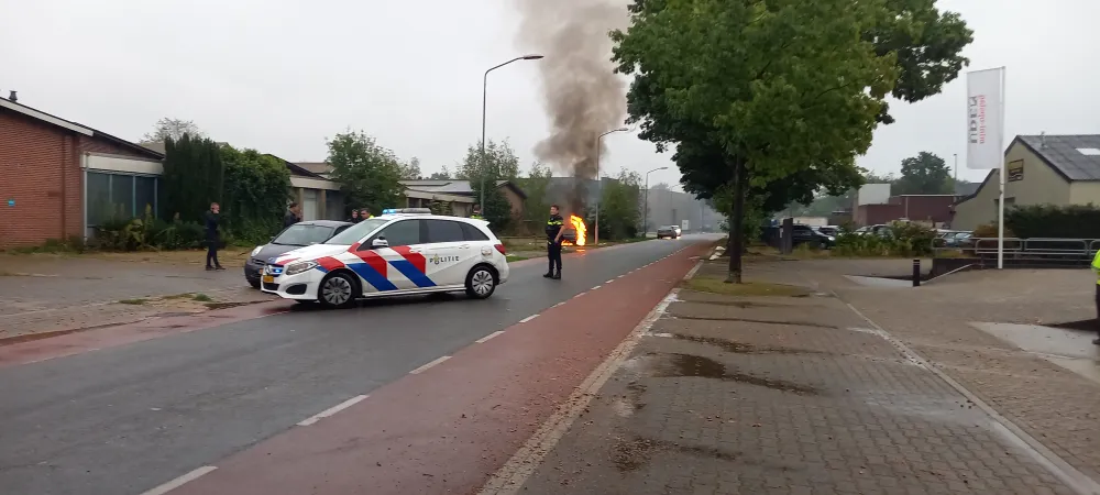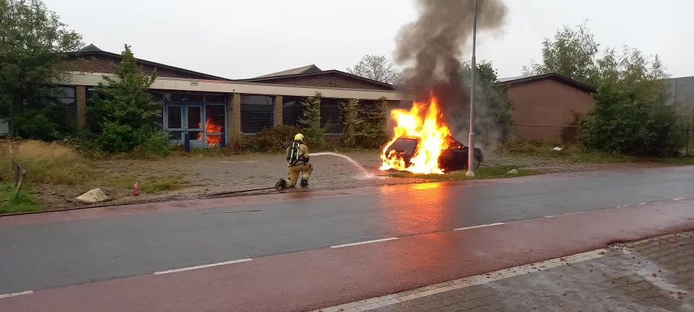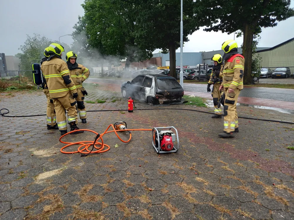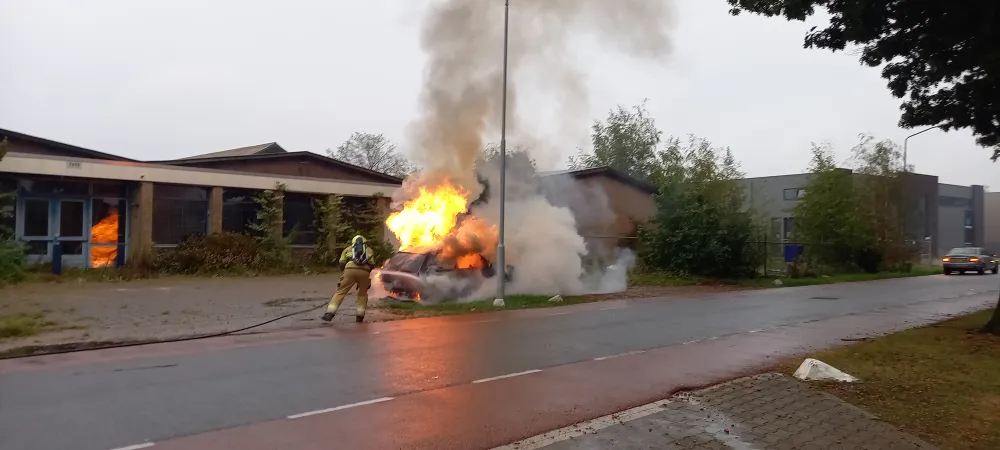 Bij aankomst brandweer stond de geparkeerde auto in lichterlaaie. Hoe de brand kon ontstaan is niet bekend. De brandweer heeft met een straal hoge druk de brand geblust. De auto kan als verloren worden beschouwd. Deze zal door een bergingsbedrijf worden getakeld. De brandweer heeft met een straal hoge druk de brand geblust. De auto kan als verloren worden beschouwd. Deze zal door een bergingsbedrijf worden getakeld.