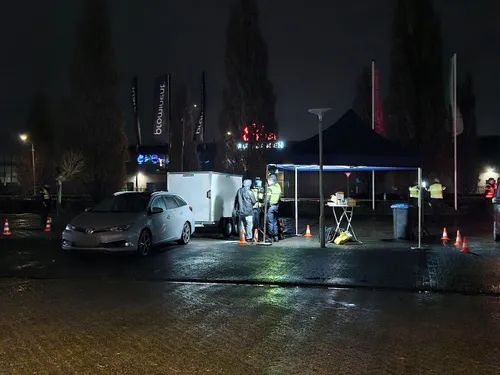 Er was daar een grote politiecontrole gaande en meerdere voertuigen werden gecontroleerd. Er zijn hierbij twee personen aangehouden. Wat de reden is van de aanhouding is niet bekend. Of er iets is buitgemaakt is ook niet bekend.