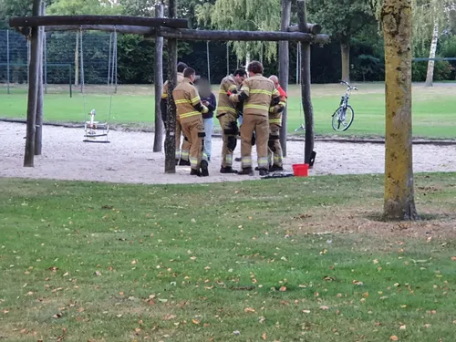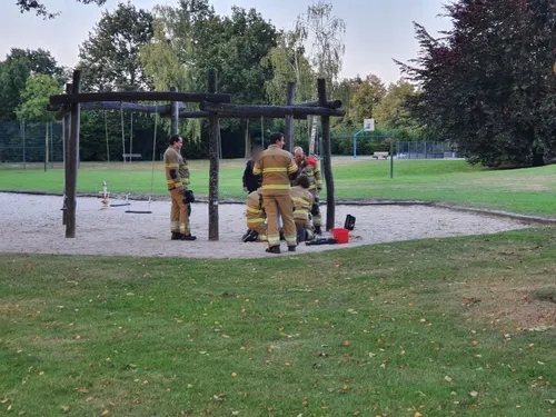 De jongedame kwam daardoor vast te zitten in de schommel en kon er met geen mogelijkheid meer uit. De brandweer van Uden, die ter plaatse was gekomen, bood uitkomst en heeft de onfortuinlijke jongedam uit de schommel bevrijd door die te demonteren. De jongedame kon er wel om lachen en hield niks aan het avontuur over. De brandweer heeft de schommel netjes weer in elkaar gezet maar de jongedame wel verteld dat ze dat geen tweede keer moet doen.
