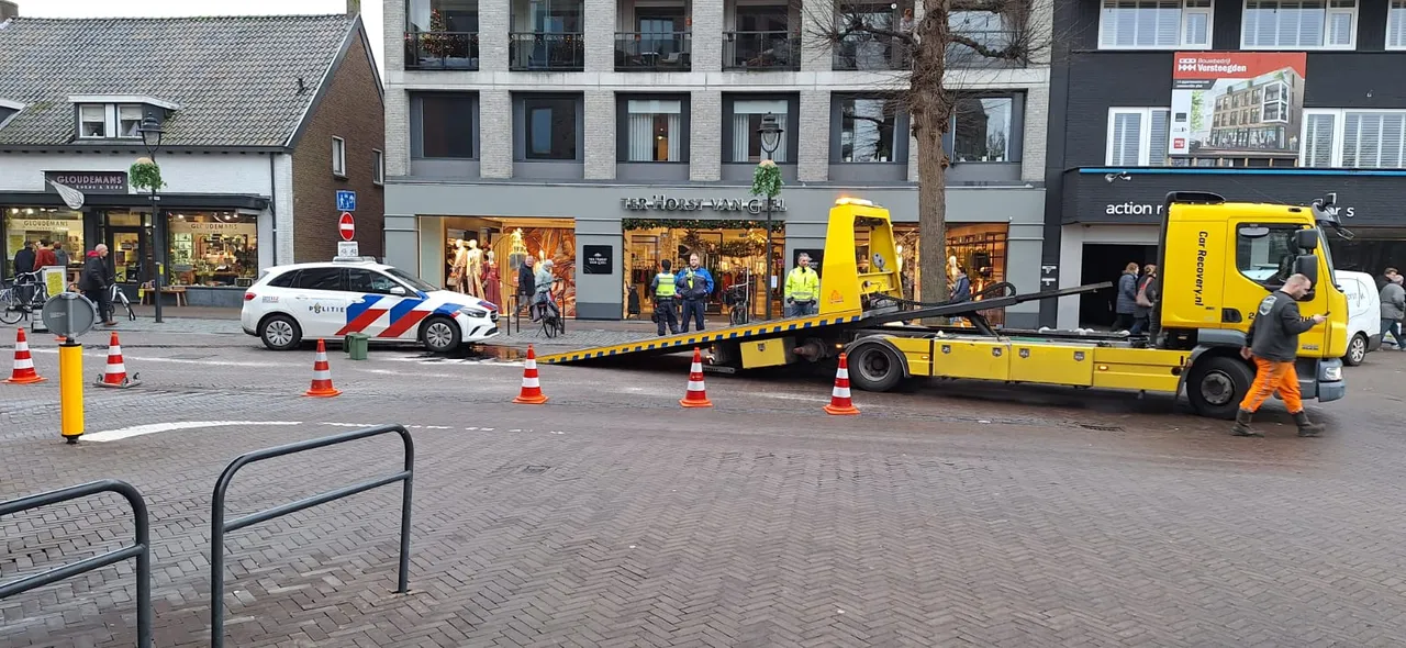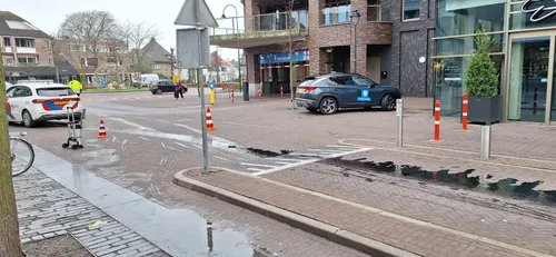 Door onbekende reden is na het uitrijden vanuit de Marktstraat iets misgegaan, waardoor het paaltje de auto aan onderkant raakte. Een flink olie met gevolg. Het politievoertuig is door een takel bedrijf afgevoerd. Het oliespoor is tevens verwijderd