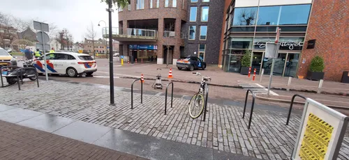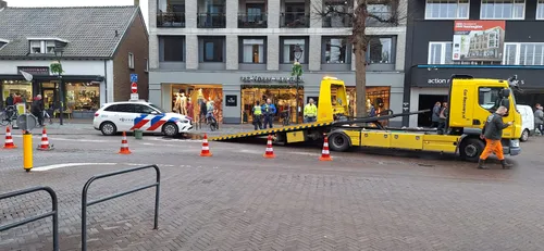 Een politievoertuig is zaterdagmorgen flink beschadigd geraakt door een paaltje in het centrum van Uden.