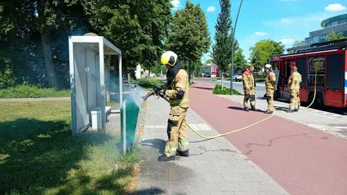 Bij aankomst staat er een prullenbak in de buurt van een bushalte in brand. De brandweer heeft met een straal hoge druk de brand geblust. Hoe de brand is ontstaan is niet bekend.