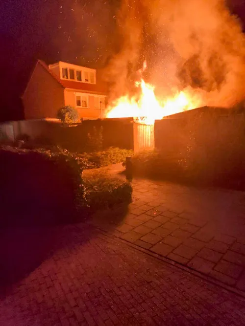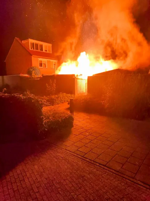 Een buurtbewoner probeerde het vuur nog te blussen met een tuinslang, maar de vlammen sloegen al snel om zich heen.