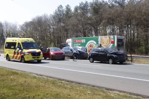Vier voertuigen zijn op elkaar gebotst aan de A50 ter hoogte van Herpen.