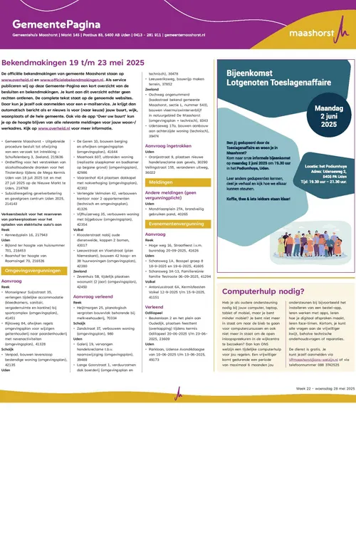 Bekendmakingen gemeente Maashorst (Week 22)