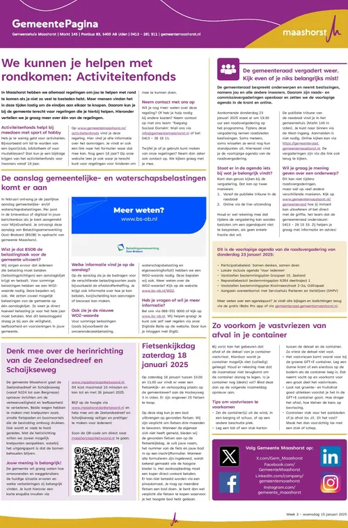 Wekelijks verschijnen er officiële bekendmakingen van de gemeente Maashorst.
