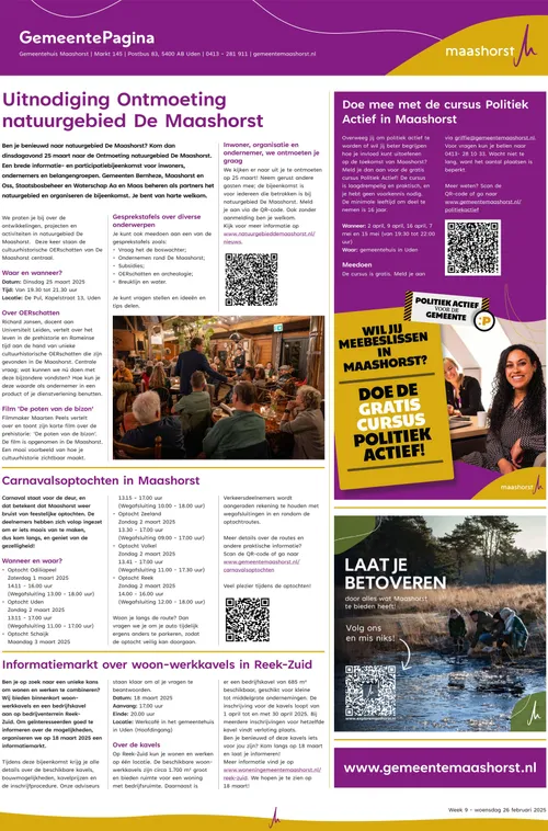 Wekelijks verschijnen er officiële bekendmakingen van de gemeente Maashorst.