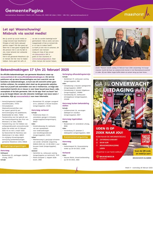 maashorst.nieuws.nl van de bekendmakingen van de gemeente Maashorst met betrekking tot vergunningen en procedures. Wekelijks verschijnt de informatiepagina op deze nieuwssite.