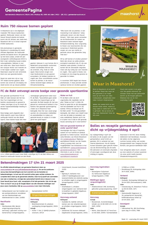 Bekendmakingen gemeente Maashorst (Week 13)