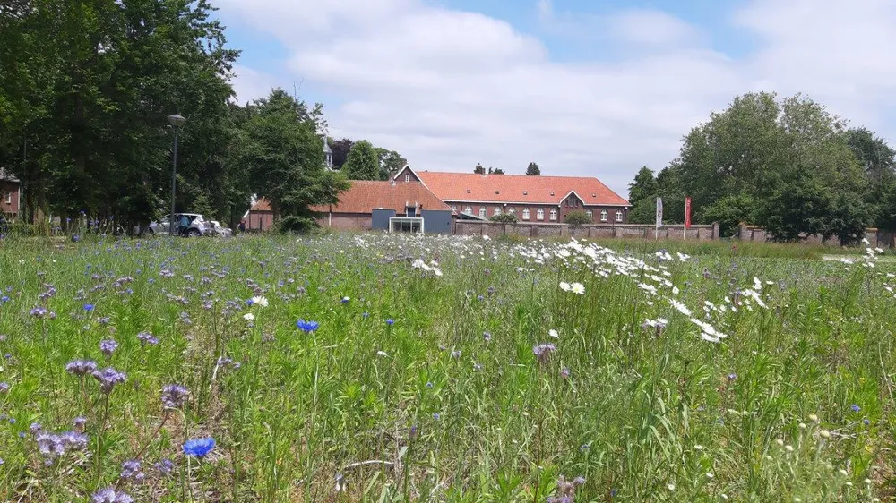 bloemrijk hooiland en op het laaggelegen deel een hei-schraal grasland. Van een afstand ziet de Stadsweide