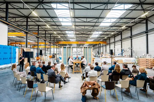 Het bezoek begon bij een renovatieproject van woningcorporatie Area in Uden, uitgevoerd door Caspar de Haan. Tijdens het werkbezoek werd op het dak van een woning live biobased isolatiemateriaal ingeblazen: los stro, een natuurlijk restproduct uit de landbouw. De demonstratie werd verzorgd door Takkenkamp Vastgoed Verduurzamers.