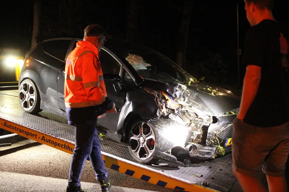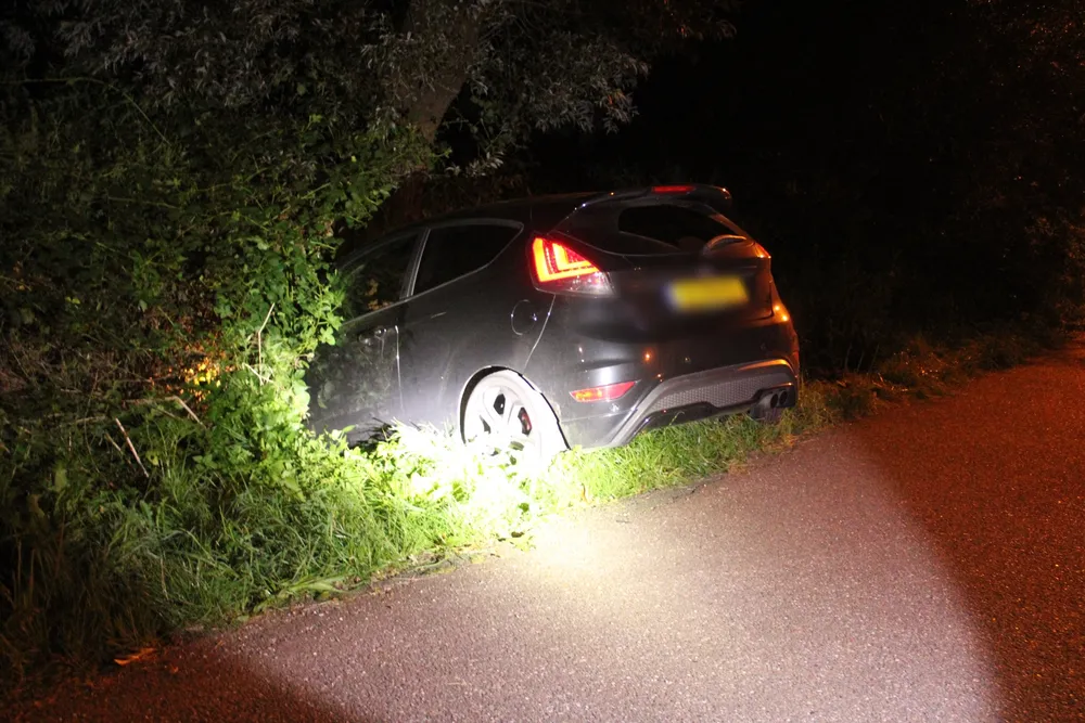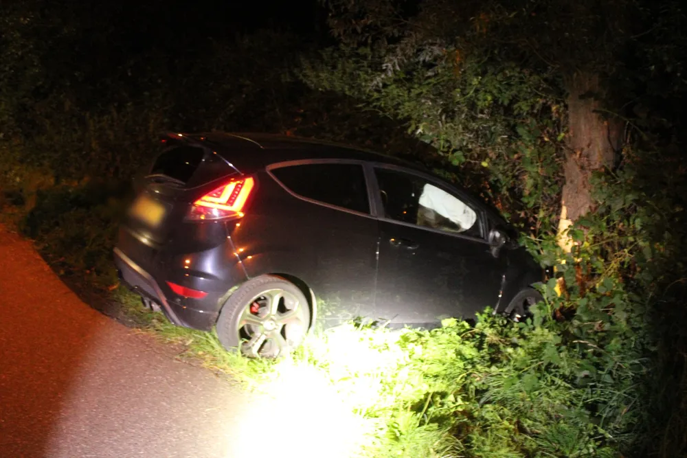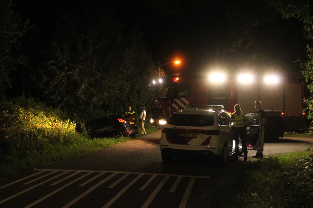 Bij aankomst bleek een personenauto op een kruispunt met de Smitsweg rechtdoor in een sloot terecht zijn gekomen. De bestuurder reed op de Driehuizerweg, verloor in een bocht de macht over het stuur, raakte daarna een boom en kwam in een sloot tot stilstand. Hoe dit kon gebeuren is niet bekend. De auto zal door een bergingsbedrijf worden getakeld. Omdat de auto begon te roken is de brandweer gealarmeerd, maar inzet bleek niet nodig. Politie is ook ter plaatse geweest en heeft rapport opgenomen. Allebei de inzittenden komen er met de schrik vanaf.