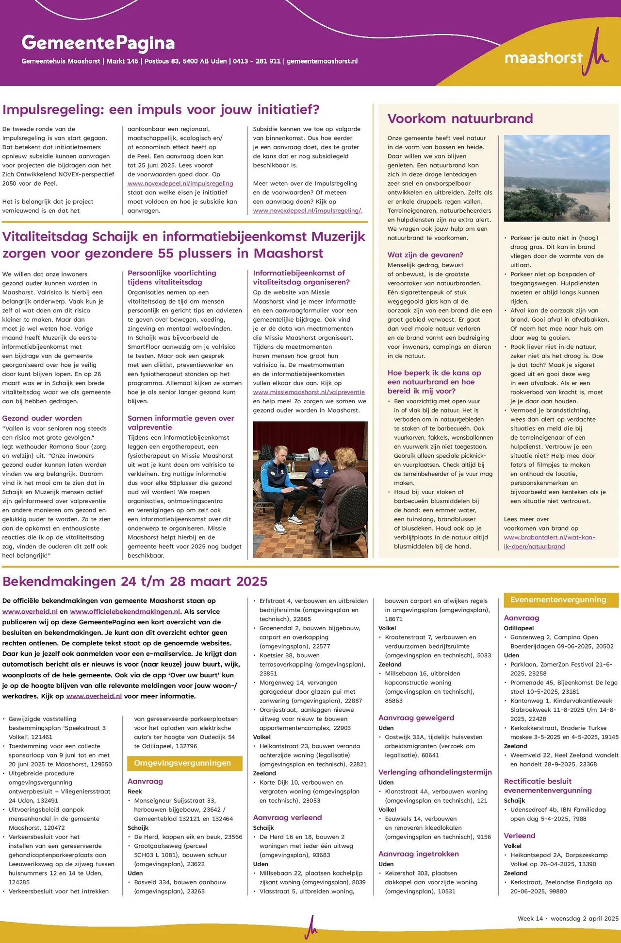 Blijf op de hoogte via maashorst.nieuws.nl van de bekendmakingen van de gemeente Maashorst met betrekking tot vergunningen en procedures. Wekelijks verschijnt de informatiepagina op deze nieuwssite.
