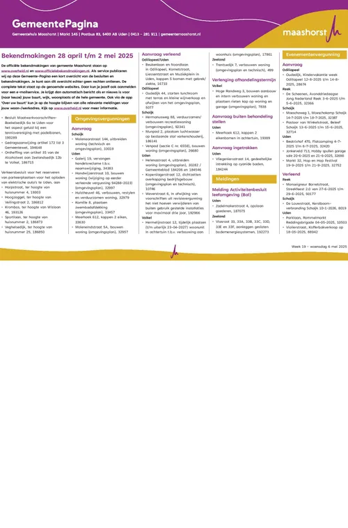 Bekendmakingen gemeente Maashorst (Week 19)