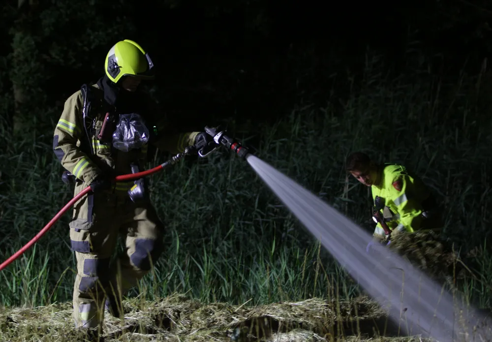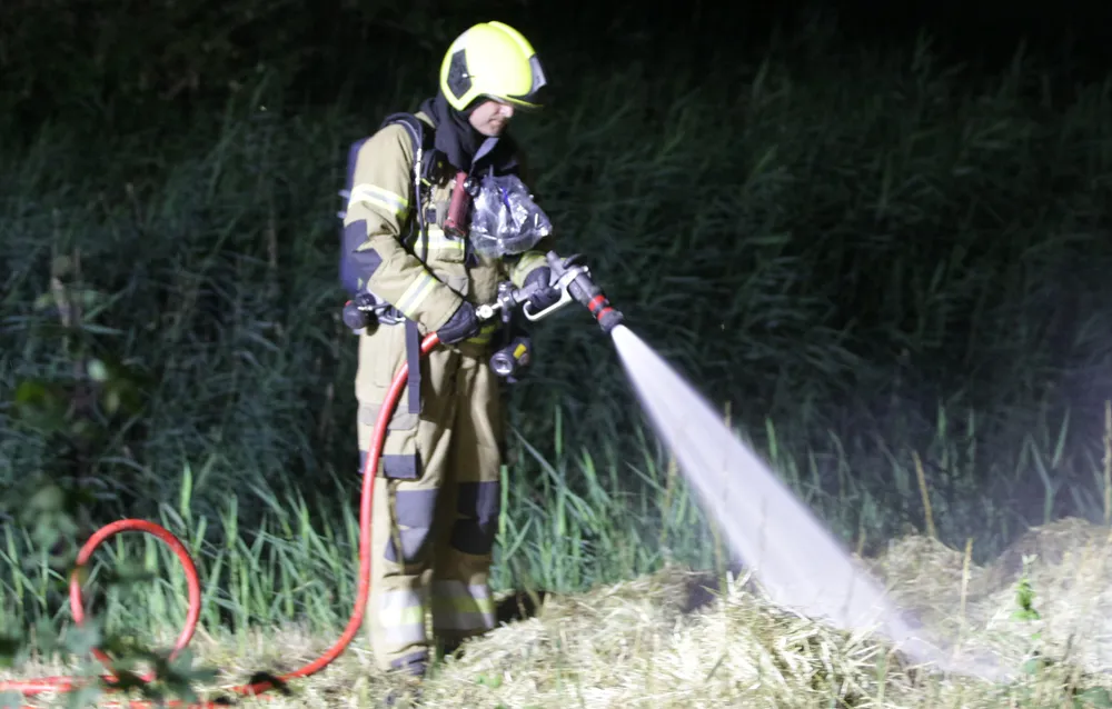 In de berm lagen meerdere strobalen, één was gaan branden. Volgens de bevelvoerder zou het kunnen dat het spontaan is gaan branden. Men gaat vooralsnog niet van brandstichting uit. Met een straal heeft men het vuur geblust. Met een riek heeft men het stro uit elkaar getrokken.
