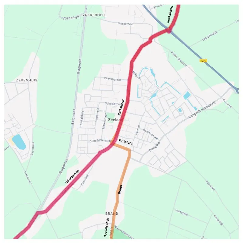 In Zeeland trekken er ongeveer 200 legervoertuigen in 9 colonnes door het dorp. De eerste colonne wordt omstreeks 12.00 uur verwacht in Zeeland. Er komen 2 colonnes via de Boekelsedijk, de Brand via de Puttelaar naar de Kerkstraat. Naar verwachting vertrekt de laatste colonne omstreeks 15.00 uur. Op de kaartjes is de route door Uden en Zeeland te zien.