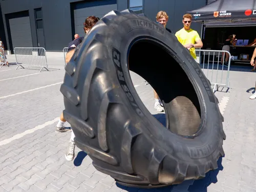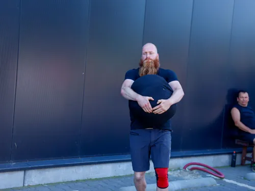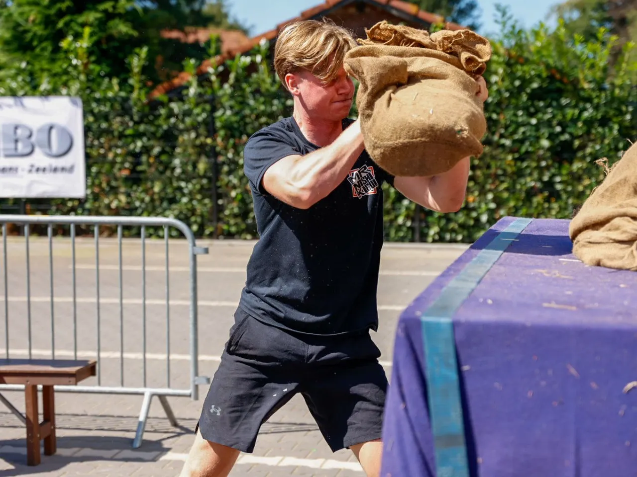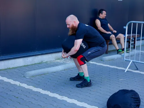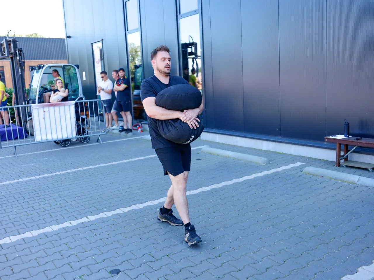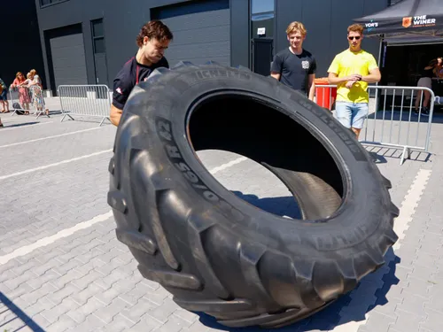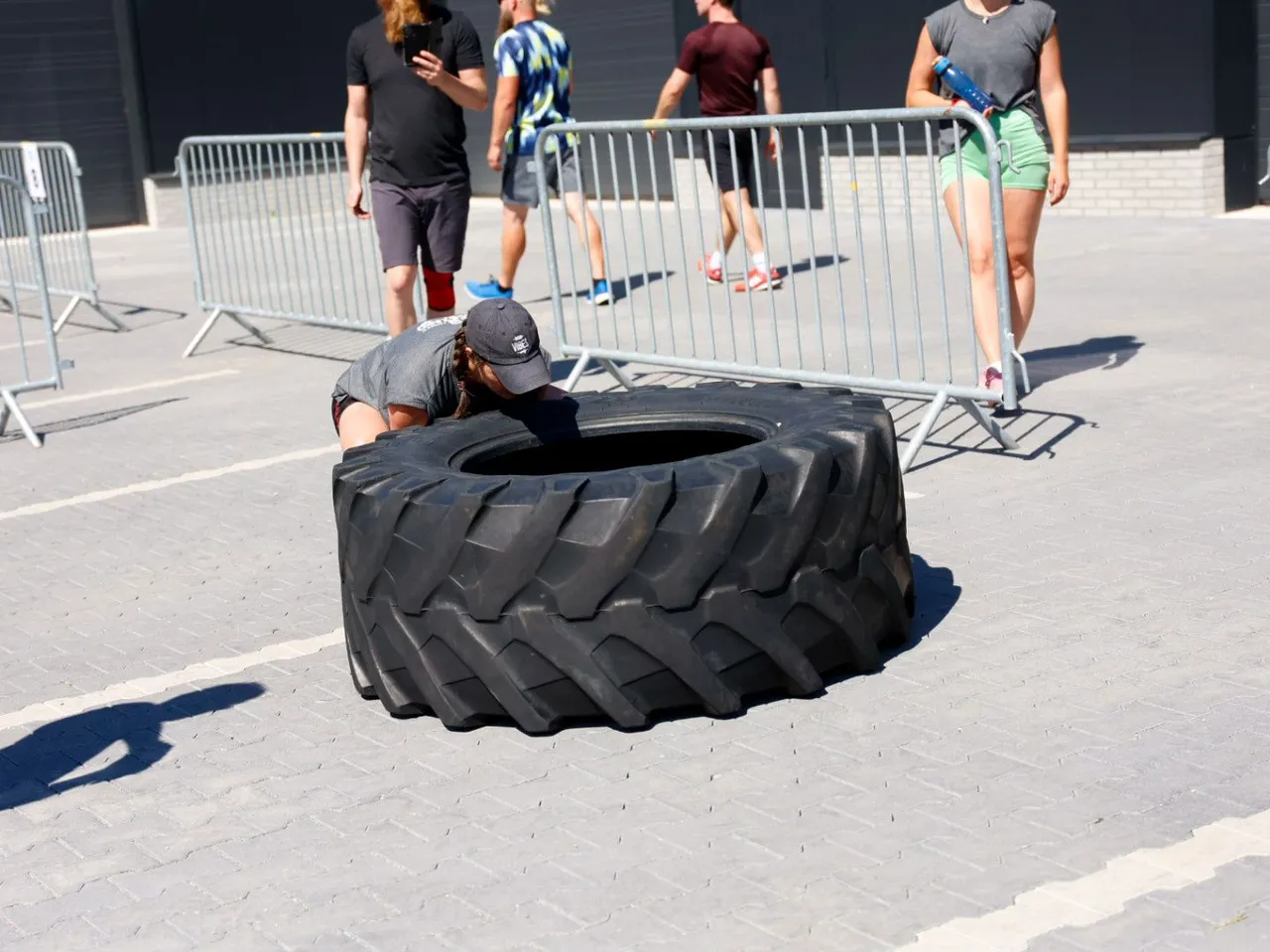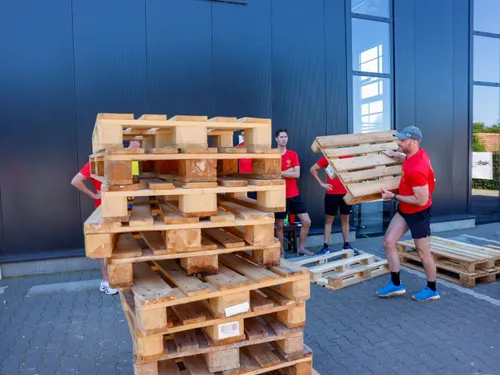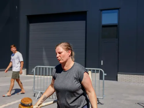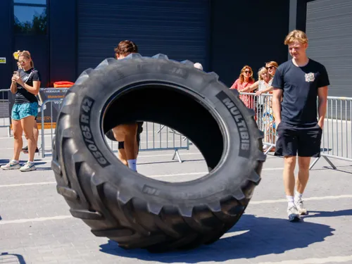 Vrachtwagen trekken, spijkerbroek hangen, hamers heffen, zandzakken tillen, pallets stapelen, bakstenen klemmen, lopen met zandzak, tractorbanden flippen