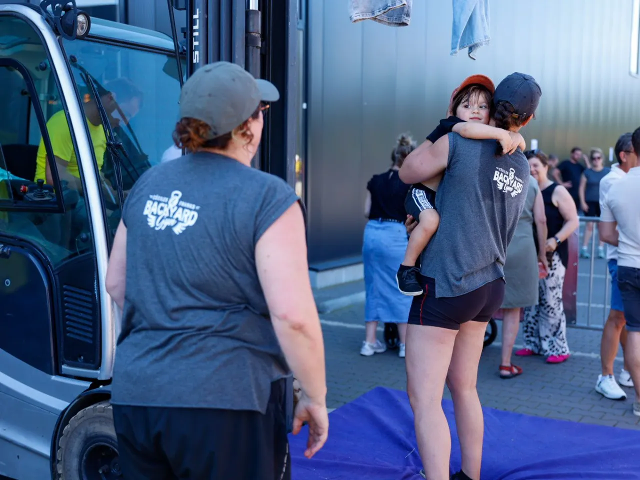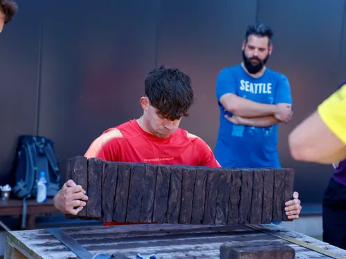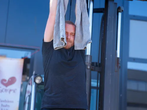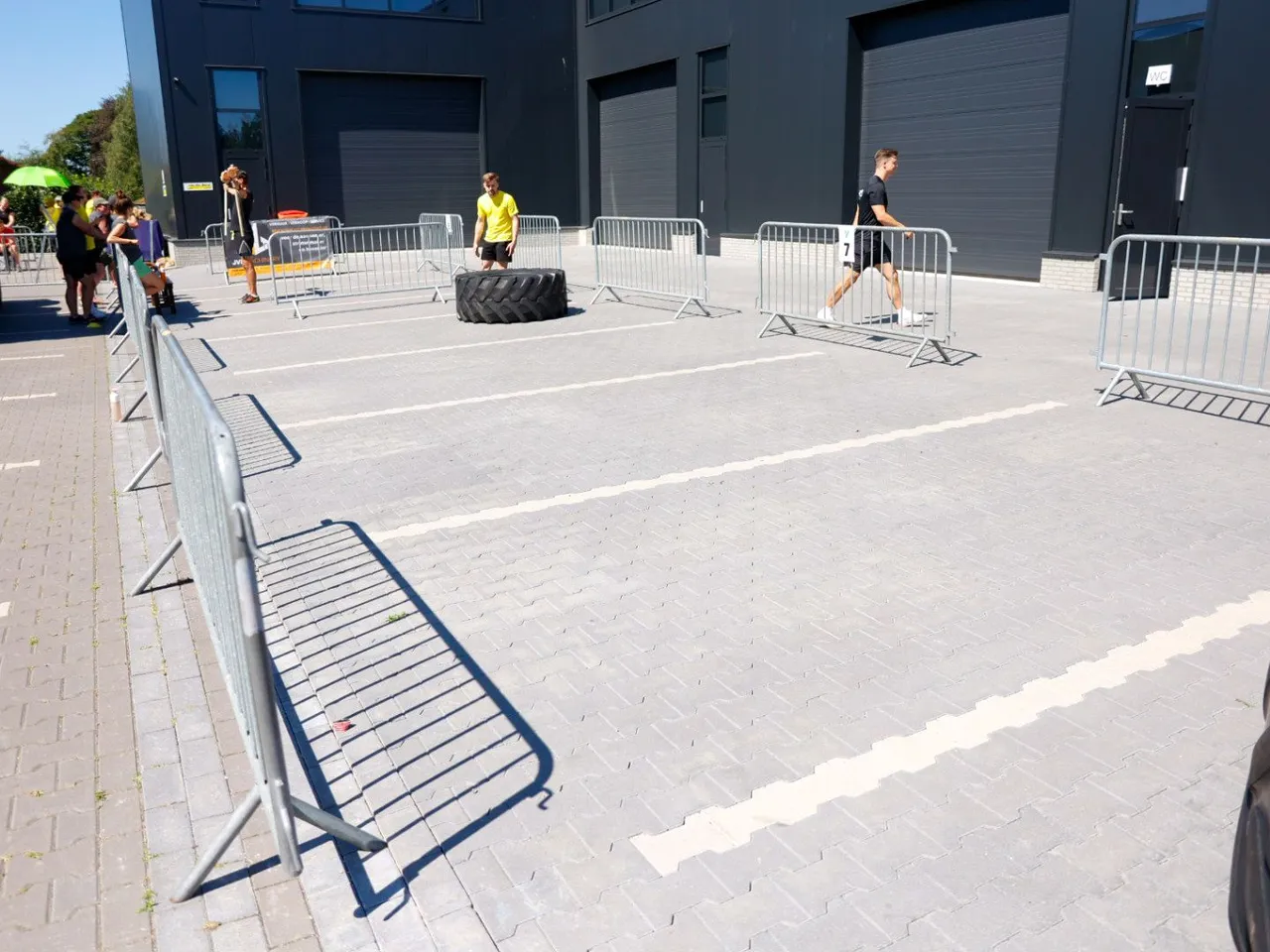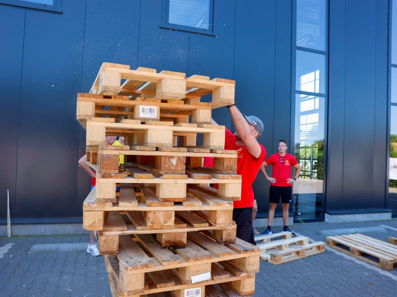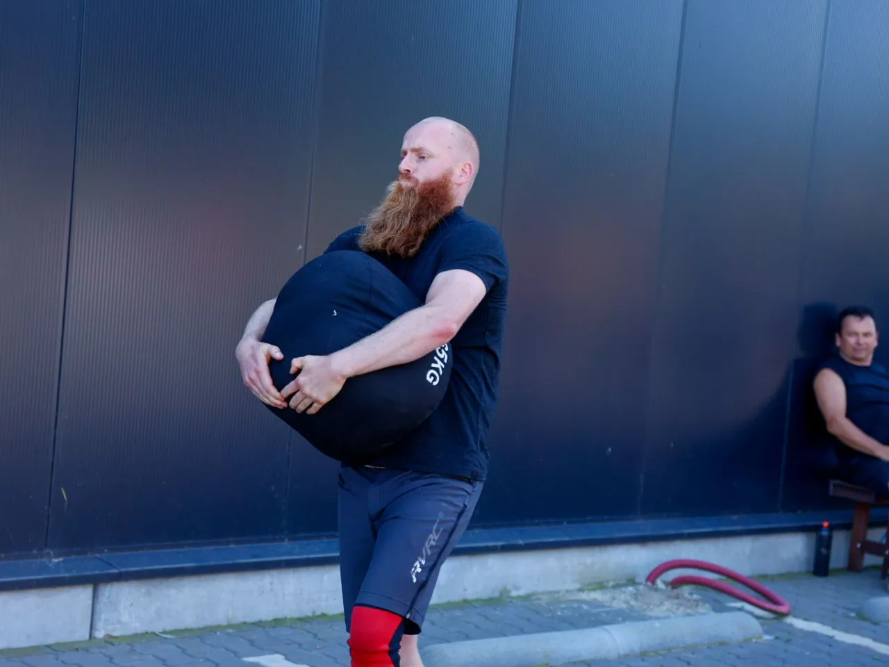 Vrachtwagen trekken, spijkerbroek hangen, hamers heffen, zandzakken tillen, pallets stapelen, bakstenen klemmen, lopen met zandzak, tractorbanden flippen