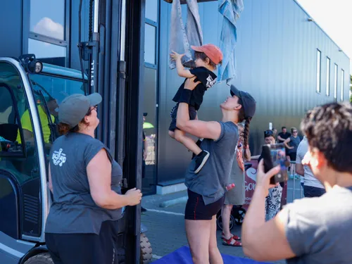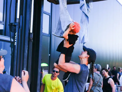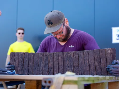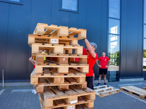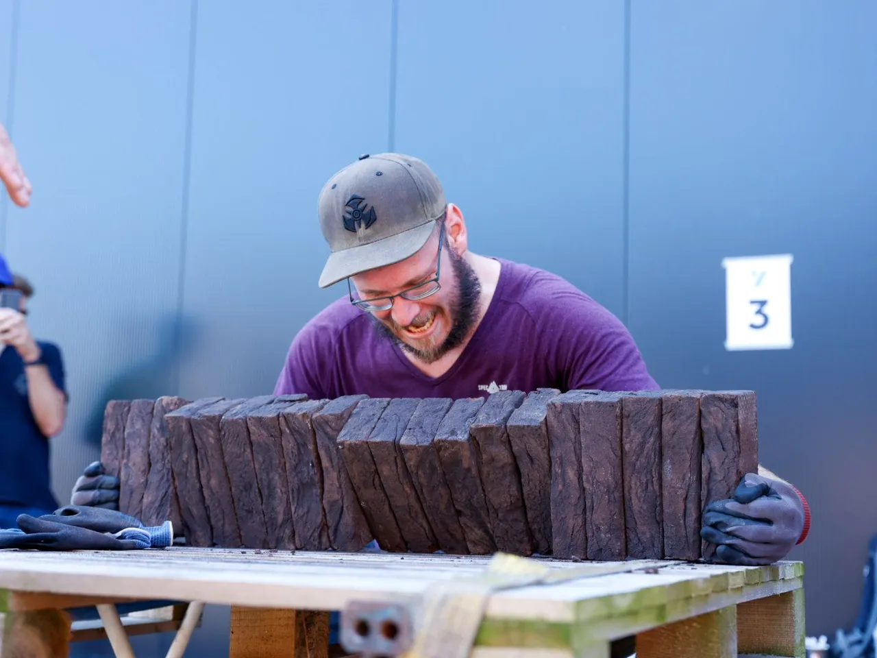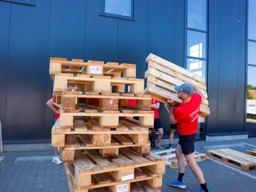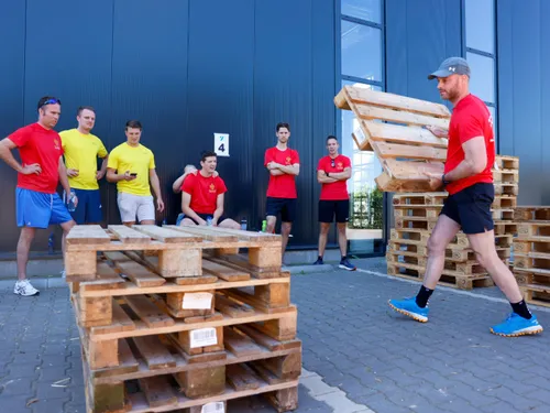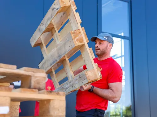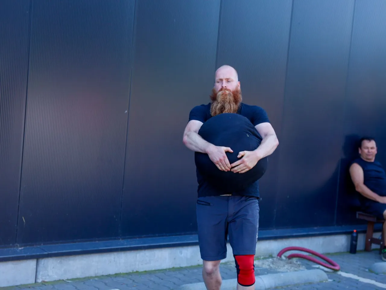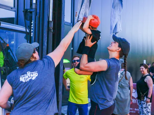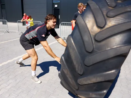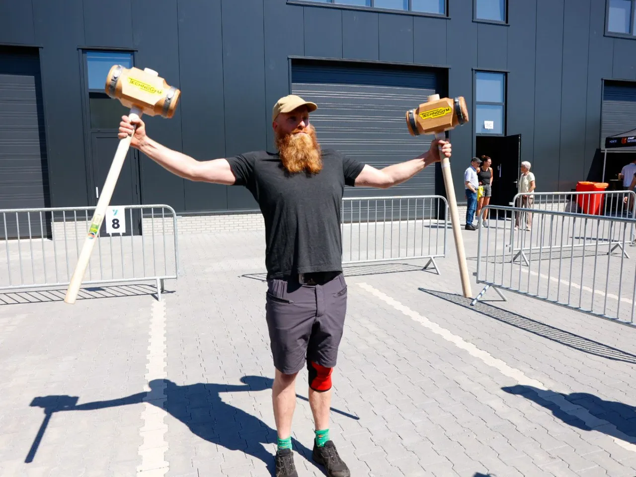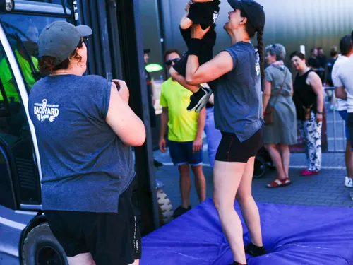 Vrachtwagen trekken, spijkerbroek hangen, hamers heffen, zandzakken tillen, pallets stapelen, bakstenen klemmen, lopen met zandzak, tractorbanden flippen