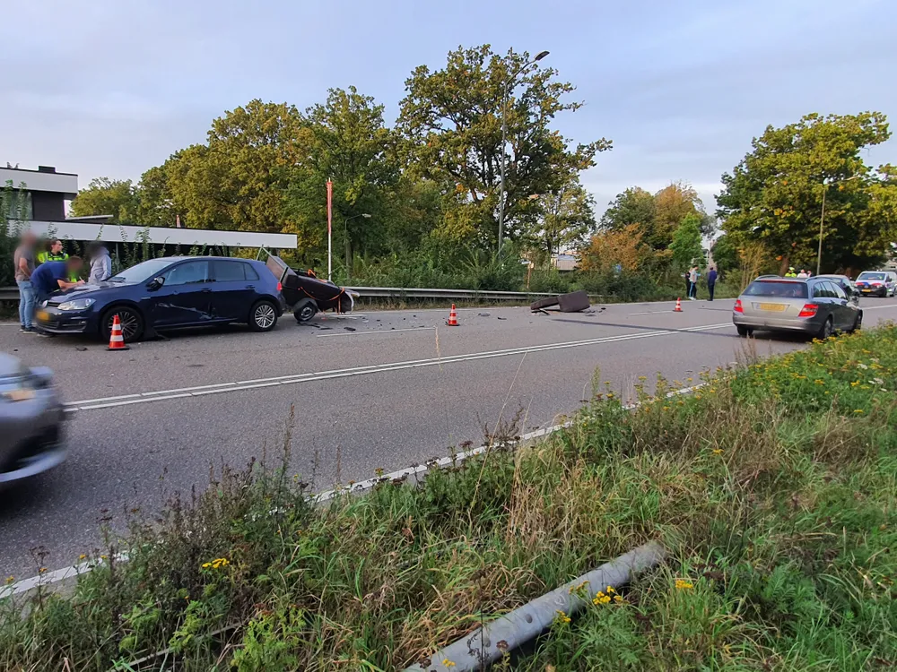 Lading lag verspreid over de weg. Berger van vorige ongeluk assisteerde ook bij deze aanrijding. Waarschijnlijk heeft de grijze auto de aanhanger niet gezien door de laagstaande zon. Een rijbaan was tijdelijk afgesloten voor verkeer. De personenauto is door een bergingsbedrijf getakeld. Politie heeft bemiddeld bij deze aanrijding.
