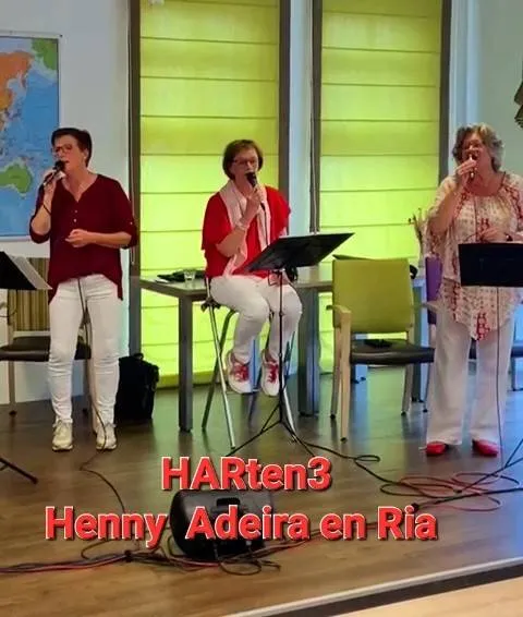 HARten staat voor de hoofdletters, de H van Henny, de A van Adeira en de R van Ria. Zij zingen vanuit hun hart, zo zijn zij aan deze naam gekomen. Vaak gingen zij liedjes van het koor verdelen in eerste stem en tweede stem, en zo zijn ze met toeval een keer meegegaan om naar Ria te luisteren en mochten ze van Ria een paar keer meezingen. Dat viel wel in goede aarde bij iedereen. Daarom zingen zij nu vaker bij verzorgingshuizen, verenigingen en thema vieringen. 17 Jaar geleden had Ria in Volkel haar eigen cd-presentatie. Na deze mooie middag heeft ze altijd gezegd, dat ze dat nóg een keer wil doen, een gezellige middag met iedereen waar zij op dit moment mee zingt.