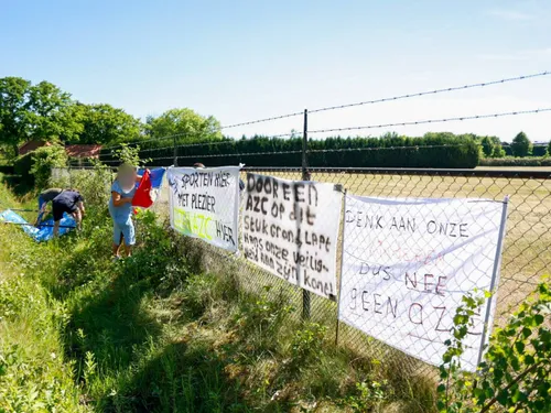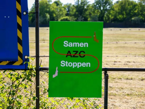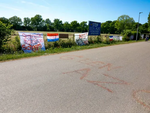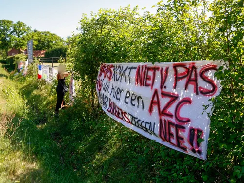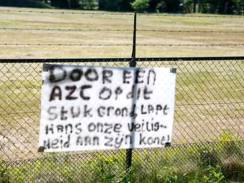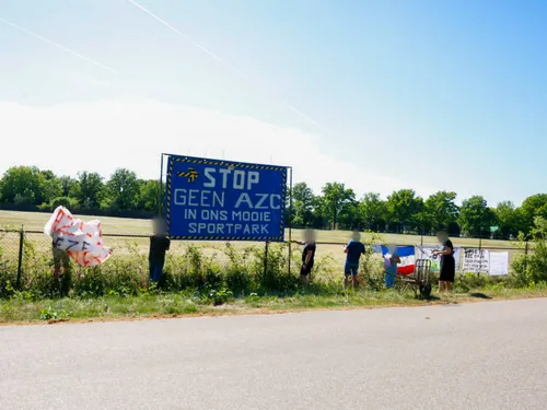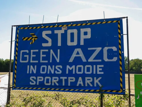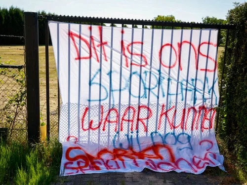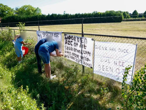 Op de locatie waar het AZC zou moeten komen hebben verschillende personen Spandoeken aan het hek gehangen waarmee ze het signaal af willen geven dat zij het er niet mee eens zijn dat er op deze locatie een AZC komt.