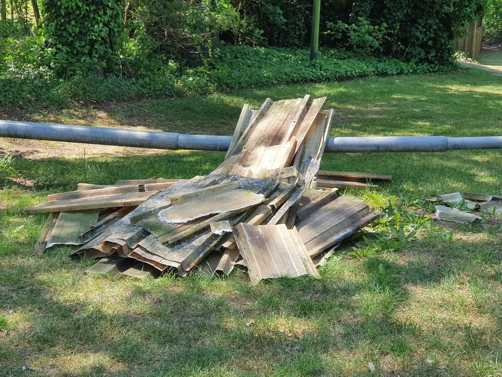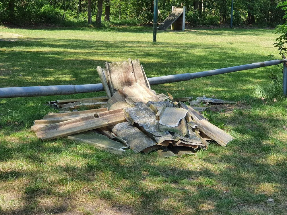 Op de Slabroekseweg in Uden bij hondensport vereniging de Trouwe Held is tussen gisteravond 17:00 en vanmiddag 13:30 een partij mogelijk asbesthoudende golfplaten gedumpt.