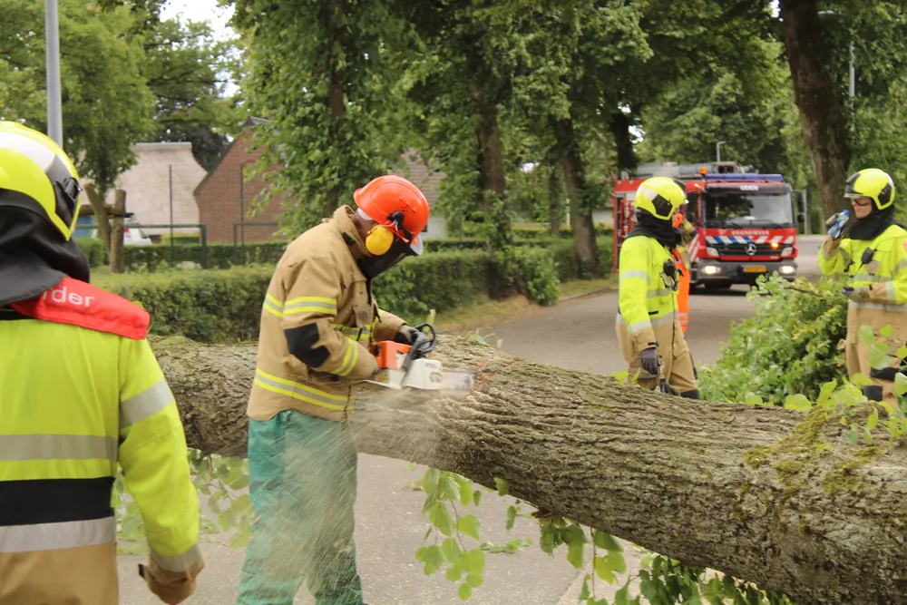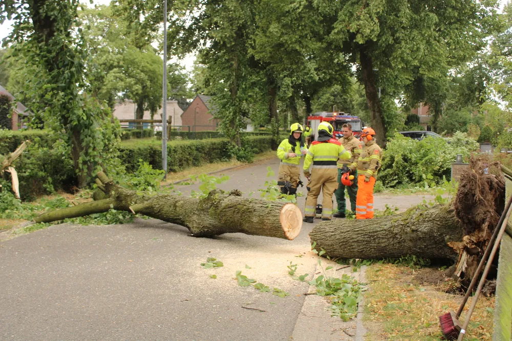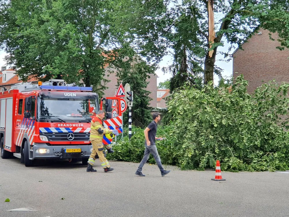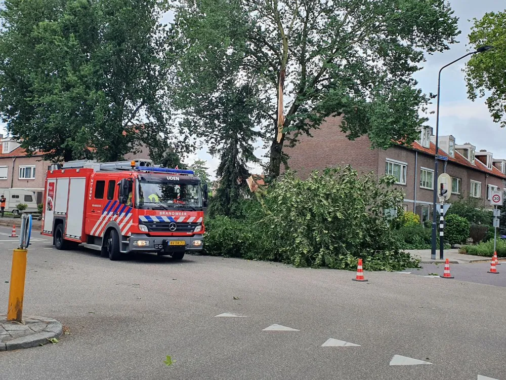 Aan de Leeuweriksweg in Uden is door de storm een boom omgewaaid en versperde deels een kruising. De gealarmeerde brandweer van Uden heeft samen met de gemeente de boom verwijderd. Zo ook aan de Bronkhorstsingel. Daar was door de harde wind een boom in tweeën gespleten en hing daardoor deels boven de rijbaan. Ook hier heeft de brandweer samen met de gemeente de boom kort gezagen om de doorgaande weg begaanbaar te maken voor verkeer. Aan de Veilingstraat versperde een dikke boom compleet de doorgaande weg. De boom hing tegen andere boom. Deze dreigde ook om te vallen. De brandweer heeft samen met de gemeente de situatie bekeken of de andere boom ook weggehaald diende te worden.