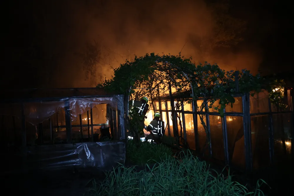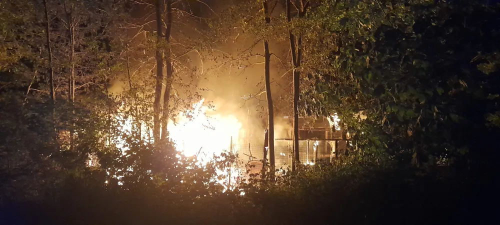 In de nacht van zaterdag op zondag rond 01.30 uur staan er op de Hoge Burchtweg in Uden meerdere schuurtjes van volkstuinen in brand