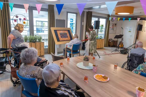 Begin dit jaar stagneerde de donaties waarna Stichting Vrienden van Sint Jan met hulp van het DELA Fonds en het Vaillantfonds voor het uiteindelijke bedrag zorgde. De BelevenisTafel is een groot, interactief beeldscherm op een verplaatsbaar en kantelbaar onderstel waaraan een of meerdere bewoners met dementie geprikkeld worden om op een speelse manier met elkaar in gesprek te gaan, te leren en te beleven. Annemieke somt de voordelen op: “De BelevenisTafel biedt bewoners van woonzorginstellingen ontspanning, beleving en stimulering van het geheugen. Bovendien helpt het de apathie van ouderen met dementie te doorbreken. Kijk naar Toon, hij vindt de BelevenisTafel een uitkomst. Puzzelen, spelletjes en muziek, alles zit erop. Voor onze zorgmedewerkers en de twintig vrijwilligers betekent de BelevenisTafel een laagdrempelige manier om de bewoners bij elkaar te brengen”, aldus Annemieke. Dit beaamt ook vrijwilligster Rieky van de Rakt. Zij is bijna dagelijks tussen de bewoners te vinden en vindt de BelevenisTafel een aanwinst en toegevoegde waarde voor MuzeRijk. BrabantZorg, locatie MuzeRijk, maakt deel uit van het Ontmoetingsplein MuzeRijk en biedt woonruimte voor mensen met geheugenproblemen. De 32 bewoners zijn verdeeld in vier kleinschalige groepswoningen. Elke bewoner heeft een eigen appartement, grenzend aan de gezamenlijke huiskamer met keuken. Voor de bewoners is er ook een gezamenlijke ontmoetingsruimte. Ga voor meer informatie, sponsoring of donatie naar de website: www.vriendenvansintjan.nl of stuur een e-mail naar[email protected].