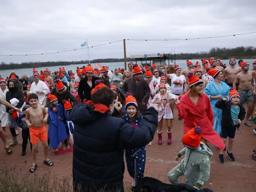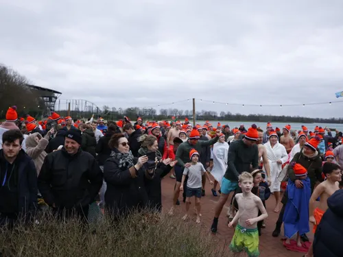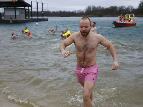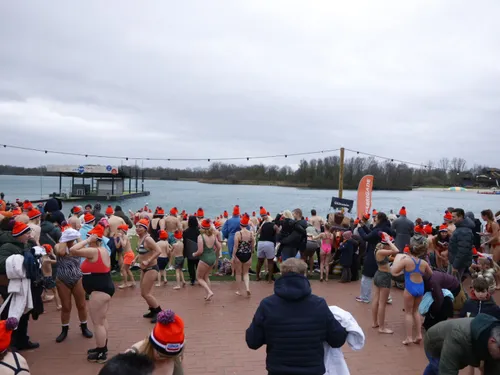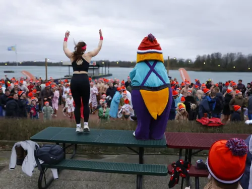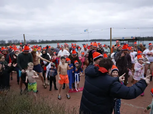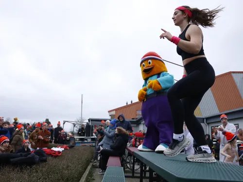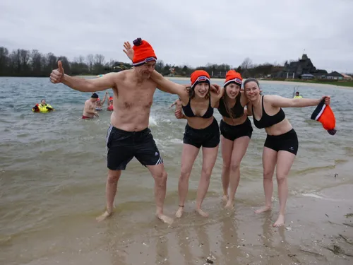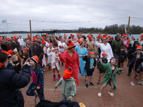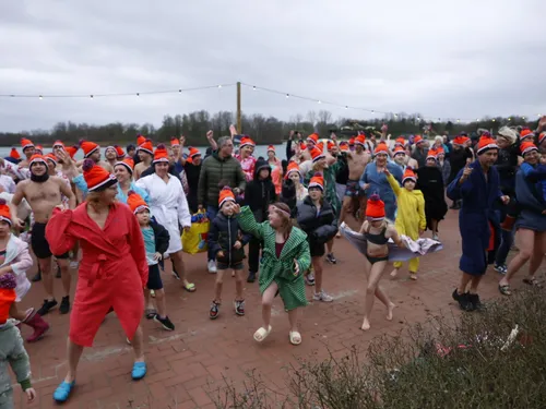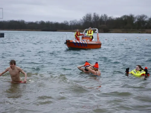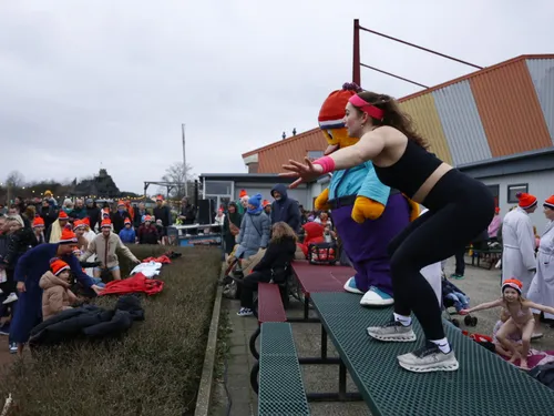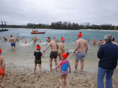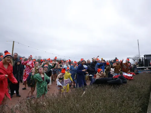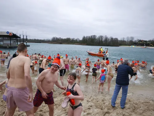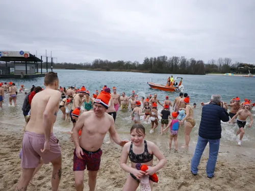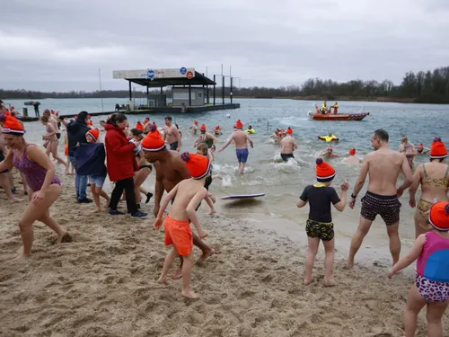 Velen trotseerden woensdag 1 Januari 2025 de kou om deel te nemen aan de nieuwjaarsduik bij BillyBird Hemelrijk in Volkel. De sfeer zat er goed in.