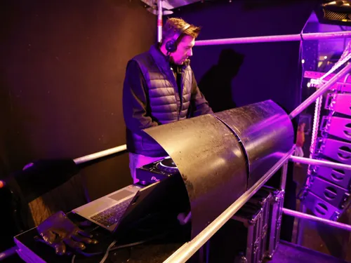 Voor start was er een warming-up met muziek en een lichtshow.