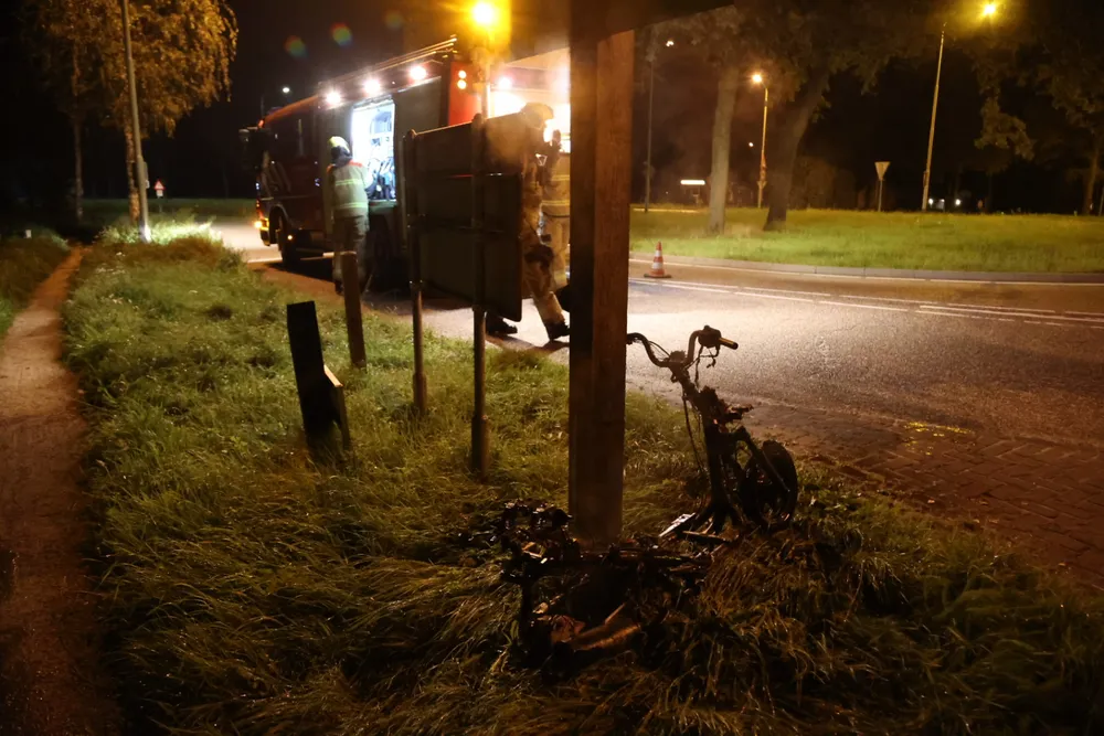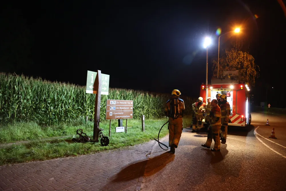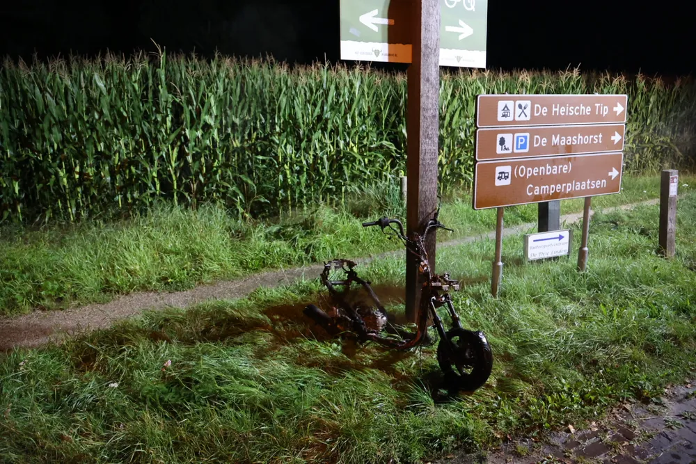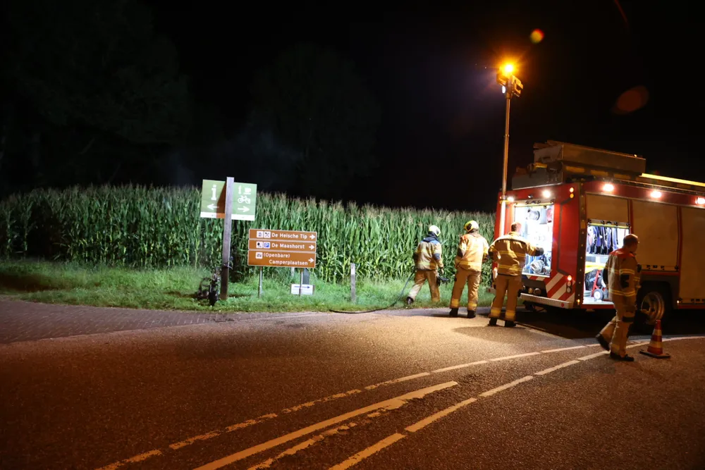 Nabij een maisveld was een scooter in lichterlaaie aangetroffen. De brandweer heeft de scooter geblust met een straal hoge druk. Daarna is de scooter door de manschappen uit het maisveld getrokken en afgeblust. Hoe de scooter daar terecht is gekomen en in brand is gevlogen is niet bekend, maar brandstichting wordt niet uitgesloten.