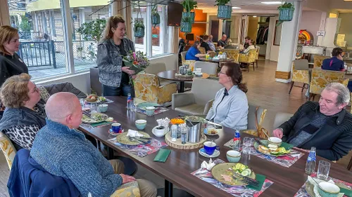 UDEN | Tijdens een door BrabantZorg verzorgde lunch is afgelopen dinsdag afscheid genomen van drie bestuursleden van Stichting Vrienden van Sint Jan. De vertrekkende bestuurders, Ank van der Leegte, Rob Vrolijk en voorzitter René Jetten hebben zich jarenlang als vrijwilliger ingezet voor de bewoners van woonzorgcentrum Sint Jan in Uden. Locatiemanager BrabantZorg, Carolien Jordens, bedankte hen voor hun jarenlange inzet en overhandigde Ank en Rob een boeket bloemen. Helaas was René Jetten vanwege ziekte niet aanwezig.