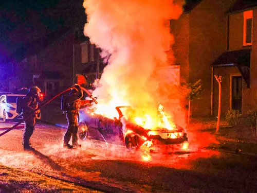 Bij aankomst staat er een geparkeerde personenauto volledig in lichterlaaie. Airbags lagen verspreid over de weg. De brandweer heeft de brand met straal lage geblust. Hoe de brand kon ontstaan is niet bekend, maar brandstichting word niet uitgesloten. Politie doet hier onderzoek naar. De auto zal door een bergingsbedrijf worden getakeld.
