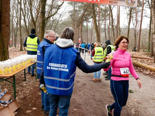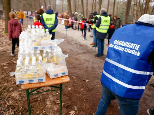 Het was zondagochtend een paar graden boven nul en vrijwel windstil. In de bossen tegenover de Pannekoekenbakker in Zeeland was een groep vrijwilligers van De Keien Atletiek bezig met de laatste voorbereidingen voor de Heuvelrugcross. Binnen bij de Pannekoekenbakker, de sponsor en tevens uitvalsbasis van de cross, was het al gezellig druk. Ouders met kinderen in kleurrijke outfits kwamen zich inschrijven en hun startnummers ophalen.