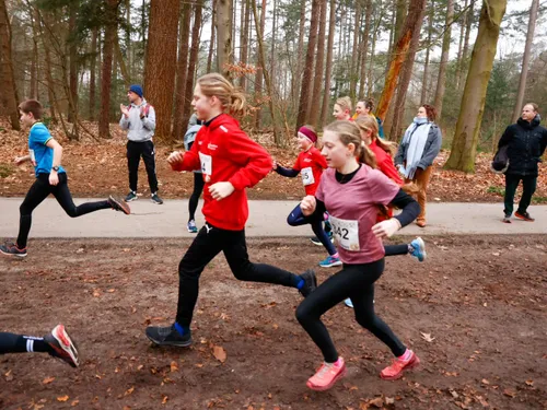 Om 10.00u klonk het startschot voor een grote groep pupillen U8-U12. Zij liepen drie of vier kleine ronden met daarin een pittig klimmetje en ferme afdaling. Om 10.15u was het de beurt aan de junioren U14-U16, zij liepen een iets grotere ronde met nog meer uitdagende stroken. De jonge atleten gingen vol overgave van start, kwamen zichzelf soms tegen onderweg, maar genoten vooral heel erg van het hardlopen in de bossen.